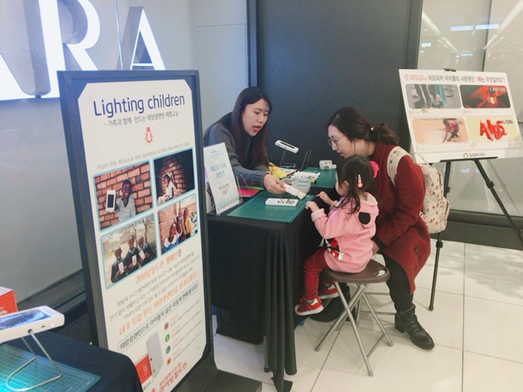 밀알복지재단은 지난 12월 10일(토)까지 롯데아울렛 서울역점과 함께 전기 없이 살아가는 에너지 저개발국을 돕기 위한 ‘태양광랜턴 체험교실’을 진행했습니다.
