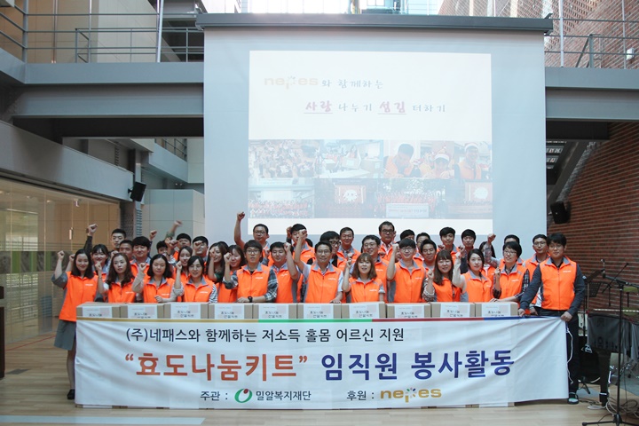 이날  (주)네패스 임직원들이 만든 ‘효도나눔키트’는 충청북도 오창과 음성 지역에서 홀로 사시는 어르신 100가정에 전달하였습니다.