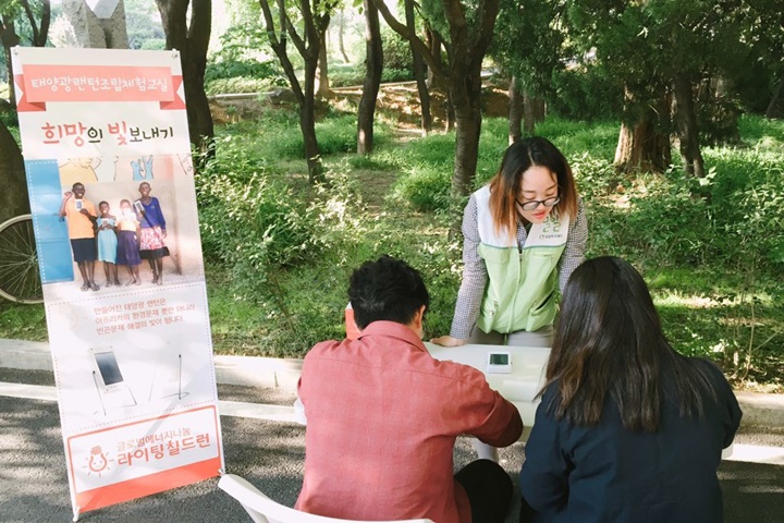 <태양광랜턴 조립 체험교실>은 전기의 혜택을 받지 못하고 살아가는 지구촌 이웃들의 실태를 경험해보고, 에너지 절약과 나눔의 필요성을 알리는 캠페인입니다. 또한 에너지 빈곤국가 아동들에게 전달할 태양광랜턴을 조립하며 나눔을 실천하기도 하였습니다.