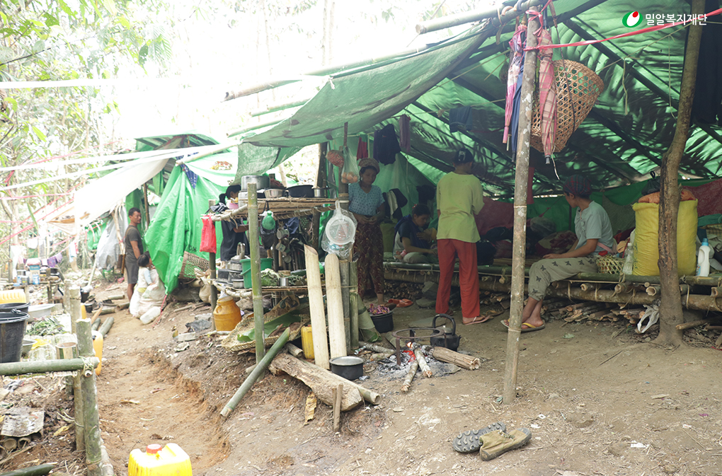 미얀마 카친주 주민들은 언제 추가 폭격이 일어날지 몰라 피난길에 오르고 있습니다. 그나마 안전한 지역으로 피난을 온 주민들은 밀알복지재단과 같은 엔지오들이 마련한 난민 캠프에서 임시 거주를 이어가고 있습니다. 그러나 이곳에서의 삶도 불안하기는 마찬가지입니다. 불안정한 정세로 인한 치솟은 물가 때문에 많은 사람들이 식량을 비롯한 생필품의 부족을 겪고 있습니다.