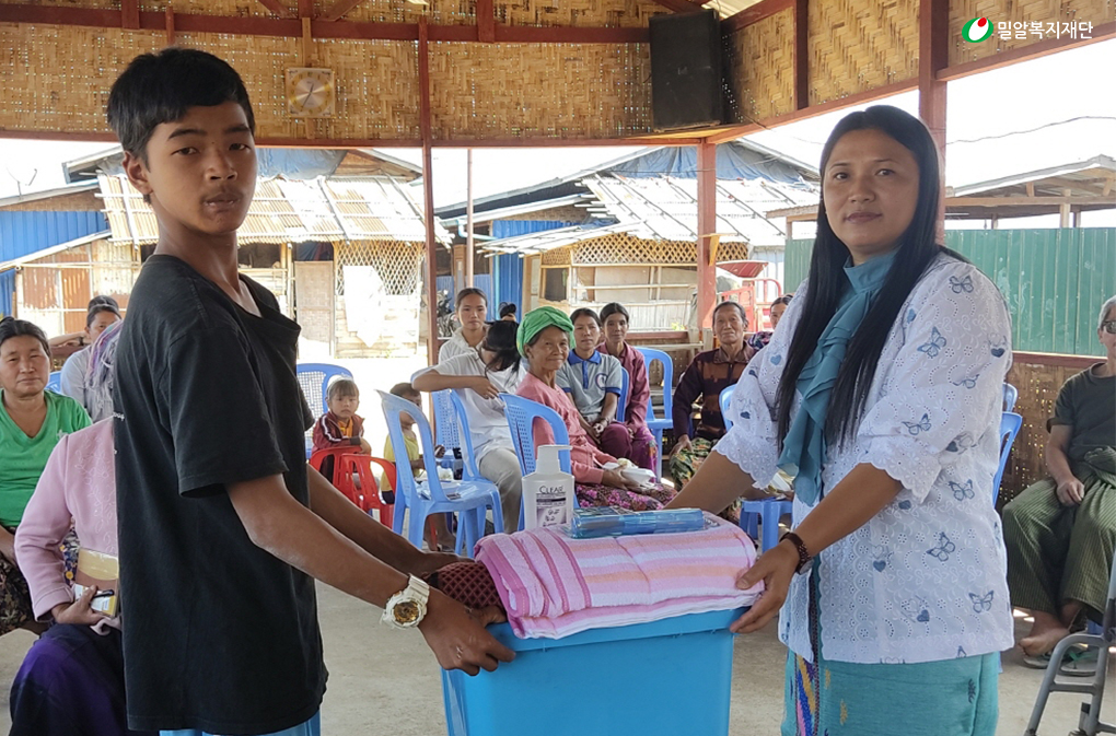 밀알복지재단의 생계지원키트를 전달받은 미얀마 카친주 난민들