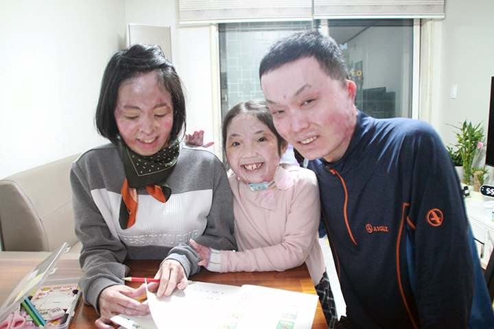 진주네 가족을 향한 사랑과 응원 덕분에 엄마, 아빠, 진주는 화상치료를 받을 수 있었으며 현재 주기적으로 피부이식수술과 재활치료를 받고 있습니다. 또한, 화재 사고로 돌아갈 집이 없어 막막했던 상황에 주거비를 지원하여 안정적인 주거 이전을 도울 수 있었습니다. 작년에 비해 건강이 많이 회복된 진주네 부모님은 체력이 좋아져 집에서 양말을 끼우는 부업을 할 수 있게 되어 기쁘다고 감사의 말씀을 전하셨습니다. 화재 사고로 몸이 많이 약해졌던 진주는 차츰 건강이 회복되어 태권도 학원을 다니기 시작했습니다. 또한, 자전거, 피아노 등 취미활동도 할 수 있게 되고 치료를 받으러 가는 날은 집에서 보충수업을 받으며 학교생활도 재미있게 하고 있습니다. 얼굴과 손에 심한 화상을 입었던 진주는 아직 말을 할 수 없는 상태로 기도 수술과 왼손 기능을 위한 수술을 받아야 합니다. 엄마, 아빠도 아직 여러 차례의 치료가 남아있는 상황입니다. 밀알복지재단은 진주네 가족이 꾸준한 치료를 받을 수 있도록 의료비, 생계비 등을 지속적으로 지원할 예정입니다. 힘든 하루하루를 보내고 있던 진주네 가족을 향한 따뜻한 위로에 감사드리며 앞으로도 많은 응원 부탁드립니다.