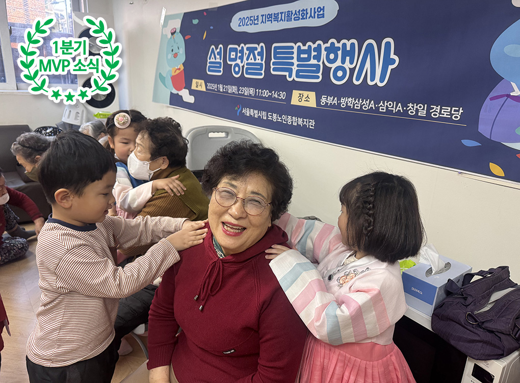 도봉노인종합복지관에서는 도봉구 내 어린이집 아동들과 함께 어르신들에게 특별한 시간을 선물했습니다. 깜짝 이벤트로 예쁜 한복을 입고 경로당에 등장한 아이들은 열심히 준비한 부채춤을 선보이고, 작은 손으로 어르신들의 어깨를 주무르며 어르신들의 안녕을 응원했습니다.